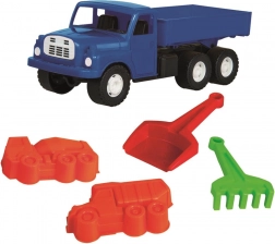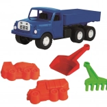 S týmto pieskovým setom si deti užijú veľa kreatívnej zábavy. Robustné auto Tatra s valníkom (30 cm) odvezie piesok aj bábovky a formičky v tvare nákladného auta a miešačky podporia ich fantáziu. Hrable a ergonomicky tvarovaná lopatka pomôžu pri stavbe ciest, hradov aj tunelov.