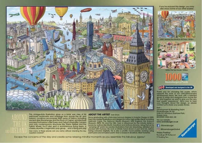 Puzzle RAVENSBURGER „Okolo Veľkej Británie a Írska“ prináša detailný motív mapy Britských ostrovov. Vďaka špičkovému spracovaniu si vychutnáte hladké napájanie dielikov, bezodleskový povrch a verné farby, ktoré robia zo skladania skutočný zážitok.