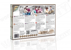 Vďaka presnému výrezu z kvalitnej brezovej preglejky sa diely skladajú bez lepidla či náradia. Mechanický pohon na gumičky vám umožní nahliadnuť do sveta prevodov, ozubených koliesok a gumových motorov. Náročnosť 4/5 a orientačný čas stavby 10 hodín z neho robí perfektný darček pre trpezlivých staviteľov a milovníkov modelov.
