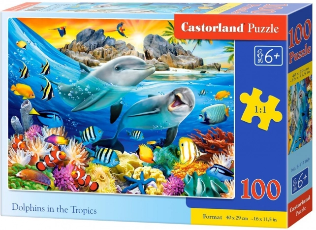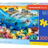 Puzzle s motívom DELPHINS IN THE TROPICS prinášajú kombináciu relaxu, estetiky a rozvoja zručností. Vďaka 100 pevným dielikom sú ideálne pre deti, ktoré už majú skúsenosti so skladaním, aj pre dospelých hľadajúcich príjemnú chvíľku pokoja. Hotový obraz vo veľkosti 40 × 29 cm sa bude skvelo vynímať v detskej izbe.