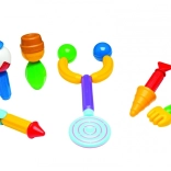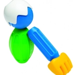 Farebné dieliky, postavičky a nástroje podporujú fantáziu, rozvoj úchopu a koordinácie oko–ruka pri každej hre.