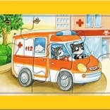 Obrázky so zásahovými vozidlami a zvieracími vodičmi podnecujú detskú predstavivosť a učia rozpoznávať tvary a farby. Puzzle sú navrhnuté tak, aby deti motivovali k hre a zároveň rozvíjali kľúčové zručnosti.