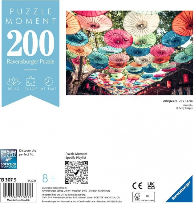 Hľadáte krátku, ale intenzívnu chvíľu pokoja? Puzzle RAVENSBURGER Moment s motívom pestrých dáždnikov ponúka ideálnu únikovú aktivitu na každý deň. Vďaka vyváženému počtu 200 dielikov a kvalitnému spracovaniu je skladanie plynulé, zábavné a skvele uľaví od každodenného stresu.