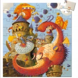 Puzzle s motívom súboja rytiera s drakom v krásnej tvarovanej krabičke.