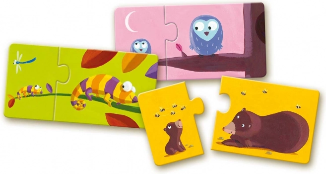 Detské puzzle Djeco ponúkajú jednoduchý spôsob, ako si začať užívať skladanie. Každý dvojdielny puzzle dielik je odolný a dostatočne veľký, čo pomáha deťom sústrediť sa a zlepšovať koordináciu oko-ruka.