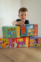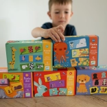Puzzle zahŕňajú rôzne interaktívne a vzdelávacie aktivity, ako je pomenovávanie zvieratiek, napodobňovanie ich pohybov a zvukov, ktoré vedú k rozvoju hrubej motoriky. Deti sa tiež učia porovnávať obrazy a hľadať zodpovedajúce prídavné mená.