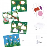 V balení nájdete všetko potrebné: výseky kvetov a zvieratiek, predtlačené obrázky, farby, sklenené guličky aj ilustrovaný návod krok za krokom. Jednoduché prevedenie zaručí ľahké použitie a čistú zábavu bez zložitej prípravy.