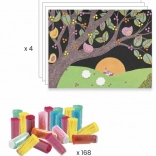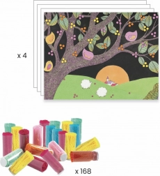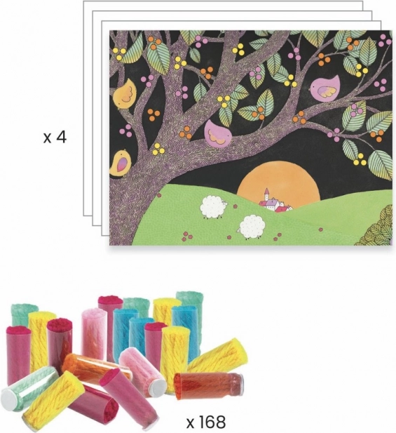 Táto hravá sada od DJECO prináša deťom radosť z tvorenia aj krásnu dekoráciu na stenu. Strapčeky sú uložené v praktických tubách s lepiacim kolieskom – stačí priložiť na označené miesto, stiahnuť obal a uvoľnený zväzok bavlniek vytvorí bohatý strapcovitý efekt. Podľa návodu alebo vlastnej fantázie vzniknú originálne, 3D obrázky.