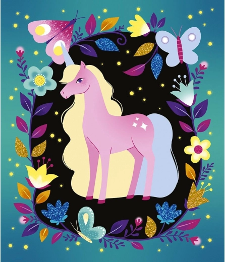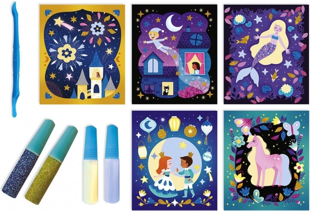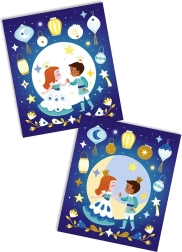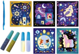 Vytvorte si svietiace obrázky z farebného piesku s trblietkami! Deti pomocou špachtle, ktorá je súčasťou balenia, odstránia vyznačené samolepiace plochy. Na tieto miesta potom nasypú trblietavý farebný piesok, ktorý svieti v tme. Prebytočný piesok sa dá nasypať späť do príslušnej tuby. Malý tip na začiatok – začnite pieskom s menšími plochami a tmavšími farbami. Sada obsahuje: 5 obrázkových kariet, 1 špachtľu, 4 tuby s trblietavým farebným pieskom. Vhodné pre deti od 5 rokov. Sada Janod Atelier na tvorenie a podporu zručností a predstavivosti u detí. Kreatívne hračky pre deti nezaberajú veľa miesta, sú vhodné na cesty aj na doma, v zdraví aj v chorobe a zabavia deti na dlhé hodiny. Tvorenie rôznymi technikami podporuje sústredenie a koncentráciu, prirodzené skúmanie a výtvarné schopnosti.