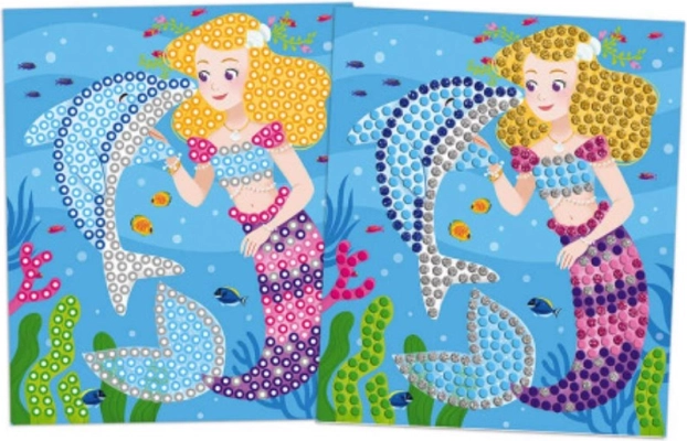 Kreatívna sada pre deti od 5 rokov, ktorá rozvíja jemnú motoriku a predstavivosť. Obsahuje 5 krásnych obrázkov morských víl a delfínov a 10 hárkov trblietavých aj farebných samolepiek na tvorbu mozaiky. Jednoduché lepenie, pestrofarebné motívy a dlhá zábava doma aj na cestách.