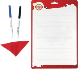 Stieracia tabuľa Koh-i-Noor so špeciálnym povrchom pre nácvik písania. Obsahuje predtlačený vzor čiar a dve fixky.