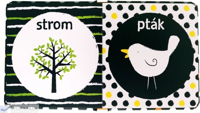 Táto pôvabná knižka s čiernobielymi ilustráciami a jemnými farebnými prvkami pomáha bábätkám lepšie zaostrovať a vnímať tvary i detaily. Predstavuje predmety a zvieratá, s ktorými sa môžete stretnúť na prechádzke, a podnecuje prvé spoznávanie okolitého sveta.