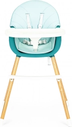 Jedálenská stolička umožňuje jednoduchú zmenu výšky. Môžete odskrutkovať nohy a opierku nôh, čím sa vysoká stolička premení na nižšiu stoličku.