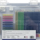 - 12× farebný uhlík, 12× akvarelová pastelka, 4× fluorescenčná ceruzka, 2× metalická ceruzka, 1× guma, 1× strúhadlo na ceruzky, 1× papierová tyčinka na rozotieranie, 1× brúsitko na tuhy