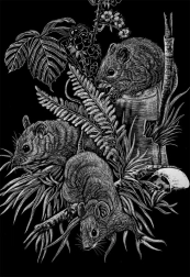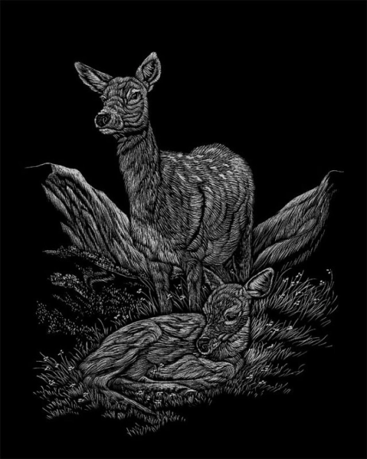 Tento škrabací blok prináša hodiny zábavy pre deti aj dospelých. Stačí priloženým perom vyškrabať línie predtlačeného motívu a pod čiernou vrstvou sa postupne odhalí zlaté, strieborné, dúhové alebo holografické pozadie. Téma divokých zvierat Severnej Ameriky nadchne malých bádateľov aj milovníkov prírody a vďaka anglickým popiskom si nenásilne precvičíte slovnú zásobu.