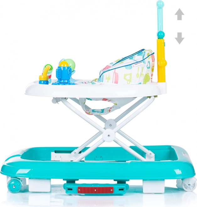 Multifunkčné chodítko 4v1 pre deti do 12 kg podporuje prvé krôčiky, rovnováhu a koordináciu. Ponúka chodítko, hojdacie prevedenie, odrážadlovú hračku aj možnosť tlačenia dospelou osobou. Vďaka širokému stabilnému základu, 3 výškovým polohám sedadla, otočným kolieskam 360° a hraciemu pultíku je zábavné aj bezpečné.