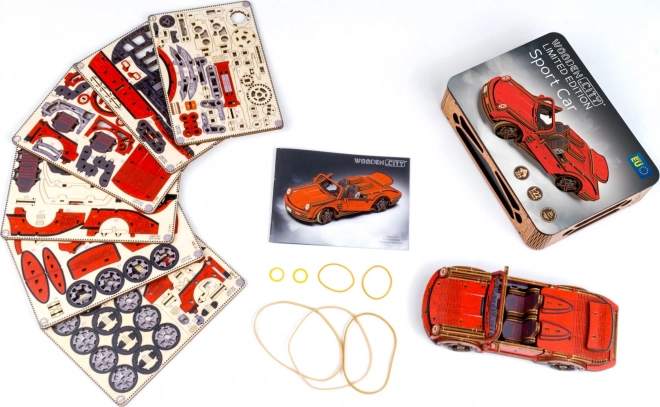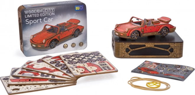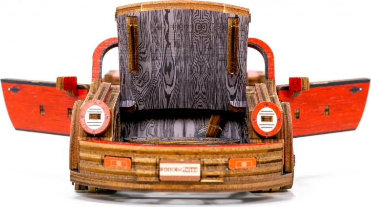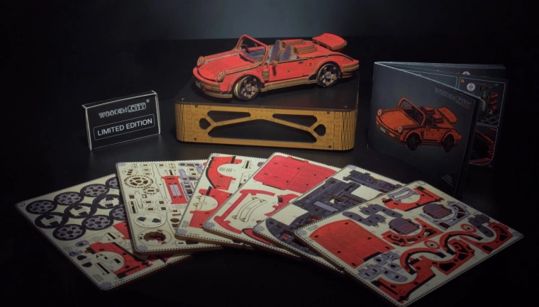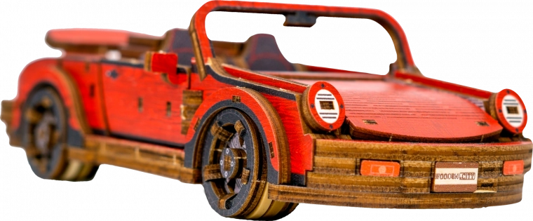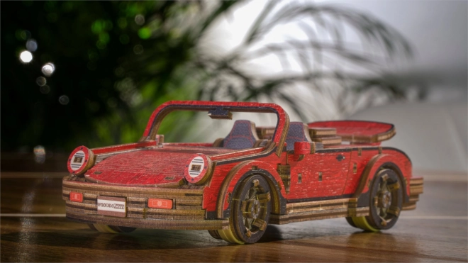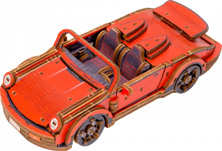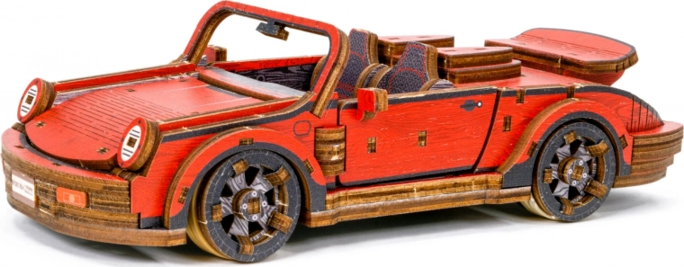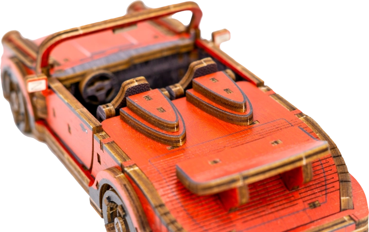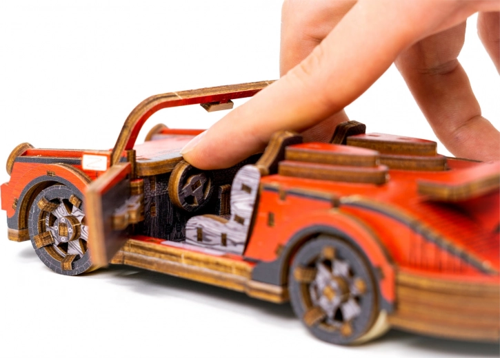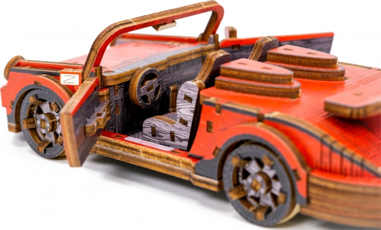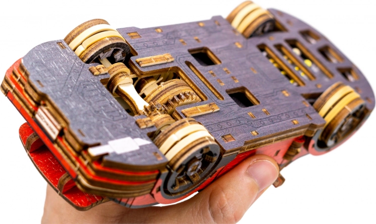 Táto drevená mechanická stavebnica športového vozidla v mierke 1:22 prináša autentický zážitok z modelárstva. Vďaka precíznej UV potlači vyniknú kontrastné farby, funkčné prvky a premyslené detaily. Auto je vybavené predným riadením a setrvačným mechanizmom, ktorý umožní prejsť vzdialenosť až 1 meter. Súčasťou je aj elegantná drevená škatuľka, ktorá poslúži ako praktický podstavec na vystavenie.