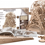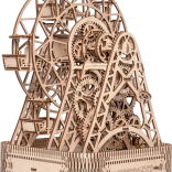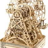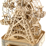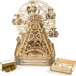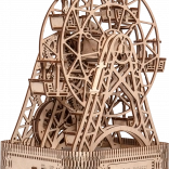Na jedno natiahnutie sa kolo otáča po dobu jednej minúty, pričom v každej z šiestich kabíniek je miesto pre cestujúcich. Nádherne vyrezávaný stojan a mechanické súčiastky oživujú spomienky na legendárny vynález Georgea Ferrisa. Stavebnica je vyrobená z kvalitnej brezovej preglejky a nevyžaduje lepidlo alebo náradie.