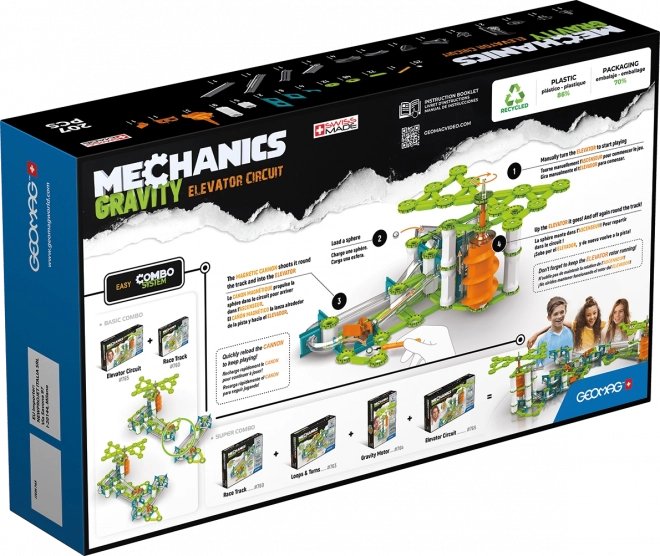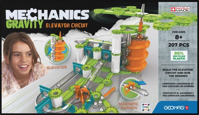 Geomag Mechanics Gravity je stavebnica, ktorá kombinuje magnetizmus s mechanikou, stimulujúc kreativitu a vynaliezavosť. Obsahuje magnetické tyčky, kovové guličky a mechanické prvky z recyklovaných materiálov.