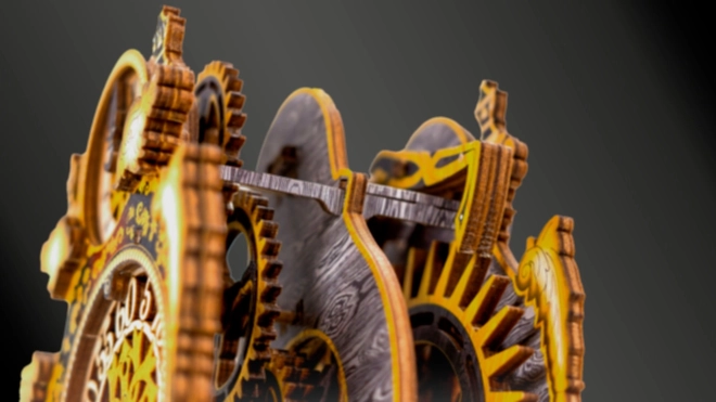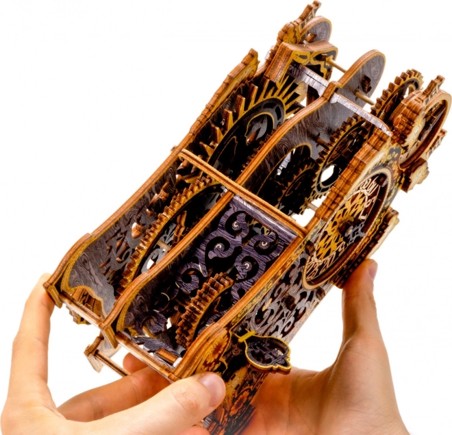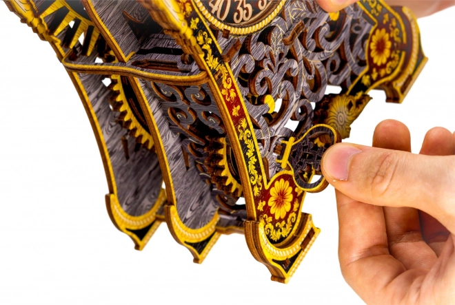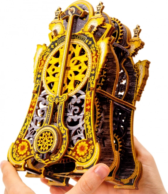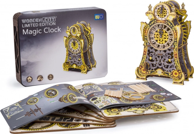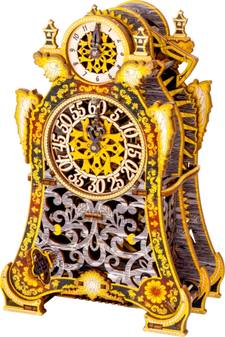 Kúzelné hodiny sú príbehom aj vedou v jednom. Po zostavení ožijú pohybom ozubených kolies a pravidelným chodom kyvadla. Dva ciferníky – pre hodiny a minúty – umožnia sledovať čas aj fascinujúcu mechaniku. Limitovaná edícia s jemnými rytinami a farebnou UV potlačou vynikne v interiéri a pripomenie atmosféru klasických rozprávok.