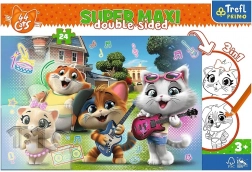 Tieto veľkoformátové puzzle Super Maxi prinášajú deťom hneď tri aktivity v jednom produkte. Predná strana ponúkne farebný obrázok s hrdinami 44 CATS, zadná strana ukrýva maľovanku a logickú hru s vyfarbovaním. Vďaka 24 veľkým dielikom sa puzzle ľahko skladajú aj malým rúčkam a rozvíjajú jemnú motoriku, sústredenie a predstavivosť.