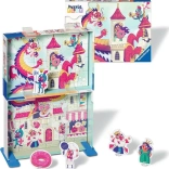 Sada Ravensburger Puzzle & Play: kráľovstvo šišiek spája skladanie puzzle a hranie príbehov. Dve skladačky s roztomilými motívmi vytvoria po zložení scény s rozmerom cca 26 × 18 cm. Po spojení oboch častí škatuľky jednoducho vytvoríte malé divadielko, kde sa príbehy z kráľovstva šišiek môžu naplno rozohrať.
