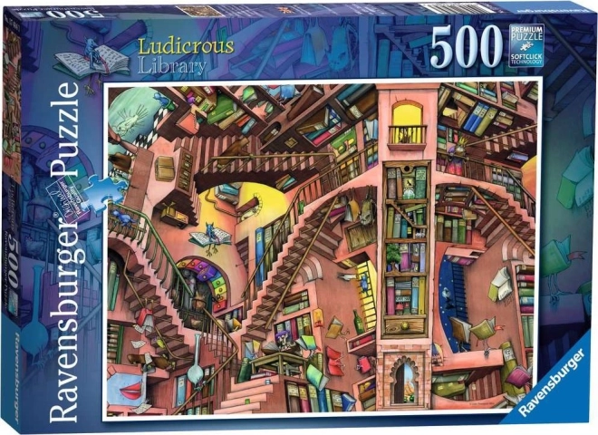 Puzzle Absurdná knižnica o rozmere zloženého obrázku približne 49 x 36 cm je ideálny pre milovníkov netradičných a pútavých motívov.