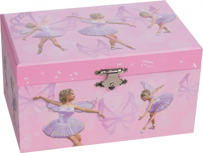 Okúzľujúca hracia šperkovnica s motívom motýľov vnesie do detskej izbičky poetickú atmosféru baletu. Po otvorení sa rozoznie jemná melódia Labutie jazero a malá baletka sa začne otáčať pred svojím zrkadielkom – perfektné miesto na uchovanie drobných pokladov a prvých šperkov.