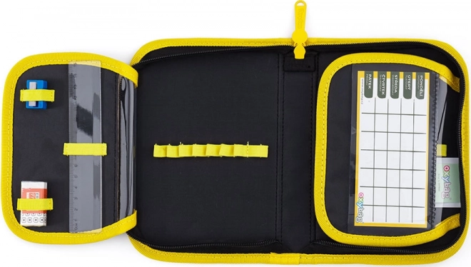 Jednoposchodový peračník s možnosťou uchytenia rôznych školských pomôcok, vybavený priehľadnou fóliou pre plánovač hodín.