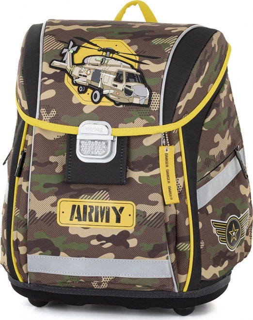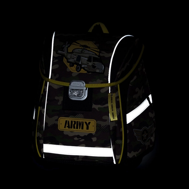 Odolné vrecko v armádnom štýle so snadným uzatváraním. Vhodné pre školu, šport aj voľnočasové aktivity.