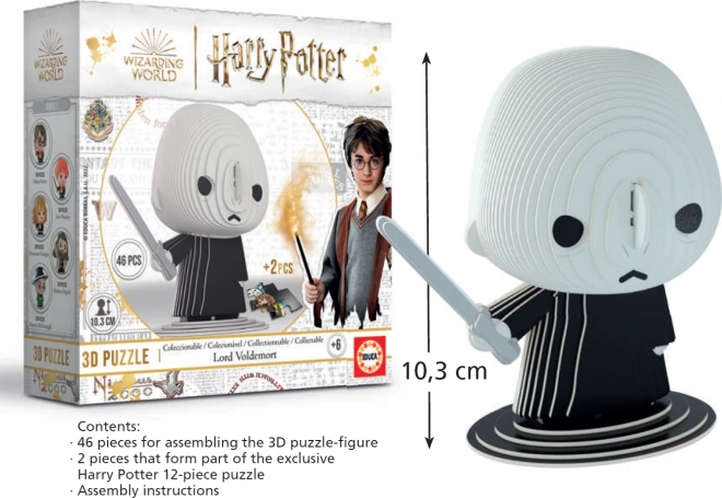 Poskladajte si ikonickú postavu z čarodejníckeho sveta – 3D puzzle Harry Potter: Lord Voldemort so 46 dielikmi. Model sa skladá z predvyrezaných kartónových vrstiev v plnofarebnom prevedení, ktoré ľahko naskladáte na seba bez použitia lepidla. Výsledkom je približne 10 cm vysoká figúrka zo zberateľskej edície, ku ktorej navyše získate 2 exkluzívne dieliky do 12-dielnej zberateľskej skladačky Harryho Pottera.