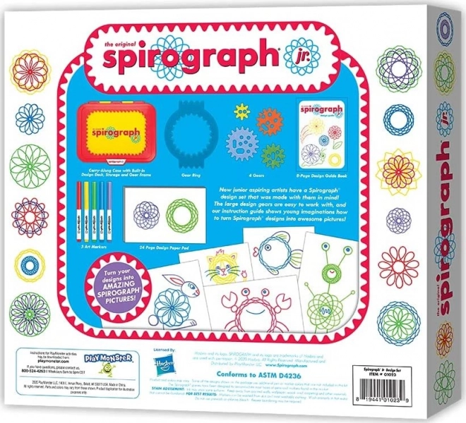 Spirograf Junior uľahčuje malým deťom tvoriť krásne návrhy vďaka veľkým dielom a jednoduchému použitiu.