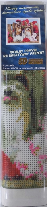 Diamantové maľovanie je skvelá kreatívna činnosť, ktorá pomáha uvoľniť myseľ a zároveň vytvoriť jedinečnú dekoráciu do bytu. Motív psíky v ružiach poteší milovníkov zvierat aj krásnych detailov. Vďaka prehľadnej legende a aplikačnému peru ľahko nalepíte farebné kamienky na predtlačené plátno.