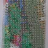 - Plátno s predtlačeným motívom, sada farebných kamienkov, aplikačné pero, miska, vosk, legenda symbolov