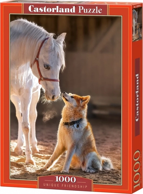 Objavte radosť zo skladania s puzzle o 1000 dielikoch, ktoré zachytáva dojemnú scénu koňa a psa. Vysokokvalitné spracovanie a presné výrezy zabezpečujú plynulé skladanie, bohaté farby a detailnú ilustráciu potešia každého milovníka puzzle aj zvierat.