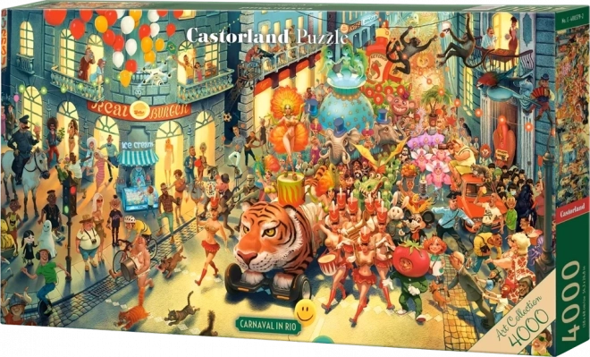 Objavte očarujúci svet samby a masiek s prémiovými puzzle 4000 dielikov Karneval v Riu podľa ilustrácie Waldemara Kazaka. Čakajú vás tajuplné postavy, skryté symboly a originálne kostýmy, ktoré spolu vytvárajú jedinečnú, satirickú scénu. Pre jednoduchšie skladanie je súčasťou balenia dodatočná ilustračná predloha.