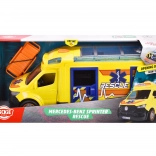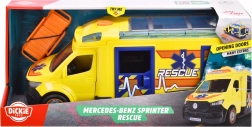 Tento Mercedes-Benz Sprinter od Dickie Toys prináša skutočný záchranný zážitok s funkciami svetiel a zvukov. Vozidlo má otváracie dvere vodiča, spolujazdca, bočné aj zadné dvere a priehľadnú strechu, čo poskytuje prístup k detailnému interiéru.