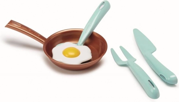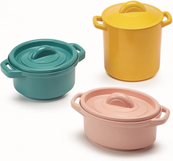 Súprava obsahuje pestrú škálu pestrofarebných hrncov a panvičiek, ktoré podnietia zvedavosť malých kuchárov.