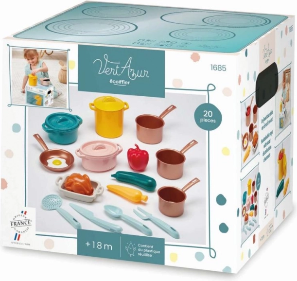 Deti milujú napodobňovanie dospelých a s touto súpravou sa môžu hrať na malých kuchárov. Táto veľká súprava obsahuje všetko, čo malý šéfkuchár potrebuje - od panvíc a hrncov až po farebné imitácie potravín. Je navrhnutá pre rozvoj fantázie a schopností role-play. Krabica, ktorá slúži aj ako sporák, zaisťuje pohodlné skladovanie a umožňuje jednoduchú manipuláciu.