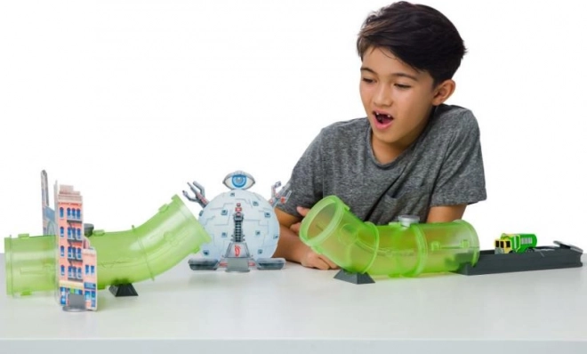 Svietivo zelené priehľadné tunely dodávajú dráhe jedinečný vzhľad a umožňujú kreatívne scenáre hry.