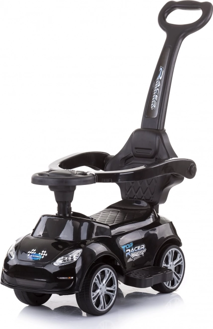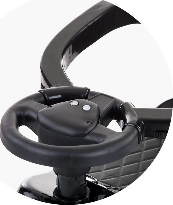 Praktický úložný priestor pod sedadlom schová drobnosti na cesty, zatiaľ čo stúpadlá možno podľa potreby ľahko odňať. Volant so zvukmi (2× AA, 1,5 V – nie sú súčasťou balenia) pridá každej vychádzke štipku pretekárskej atmosféry.