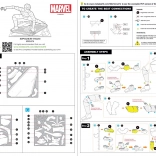 Skladanie prebieha bez lepidla – diely sa spájajú pomocou drobných zámkov a ohýbaných jazýčkov. Pre pohodlnú prácu odporúčame malé štípacie kliešte a jemné ploché klieštiky (nie sú súčasťou). Výsledkom je odolný, kovový model vhodný na poličku, do vitríny či ako originálny darček pre fanúšikov MARVEL a modelárov.