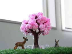 Po zaliatí sa počas niekoľkých hodín vytvoria jemné ružové kryštály, ktoré napodobňujú rozkvitnutú sakuru a premenia jednoduchý stromček na efektnú dekoráciu.
