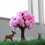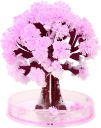 Magický kvitnúci stromček prinesie do vášho domova kúsok jarnej atmosféry počas niekoľkých hodín. Papierová silueta stromu po zaliatí absorbuje roztok a na vetvách sa vytvoria jemné, nadýchané kryštály v odtieňoch ružovej – ako rozkvitnutá sakura. Vďaka priehľadnej miske stromček vynikne na pracovnom stole, poličke aj nočnom stolíku.