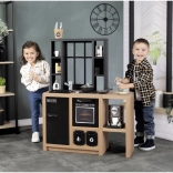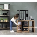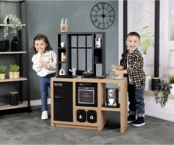 Kuchynka SMOBY Loft v industriálnom štýle skvelo zapadne do moderného interiéru a deťom ponúkne bezpečný priestor na napodobňovanie skutočného varenia. Otočné gombíky, otváracie dvierka a praktické priehradky podporujú rolovú hru, samostatnosť aj sociálnu interakciu.