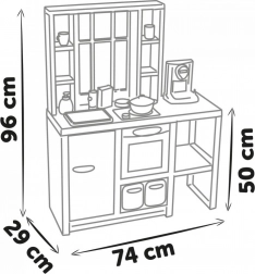 Varná doska, rúra s okienkom, drez a chladnička umožnia deťom napodobňovať skutočné činnosti, otáčať gombíkmi a objavovať radosť z varenia.