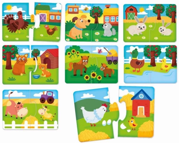 Puzzle s motívmi z farmy pomáhajú rozvíjať jemnú motoriku a kognitívne zručnosti detí.