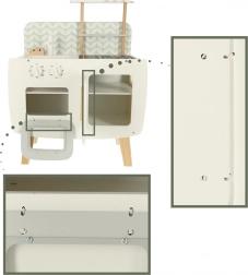 Dizajn kuchyne je jednoduchý a jemne pastelový, vďaka čomu sa hodí do každého detského pokoja ako centrálny prvok hry i ako estetický doplnok.