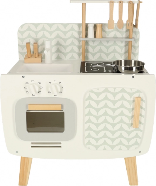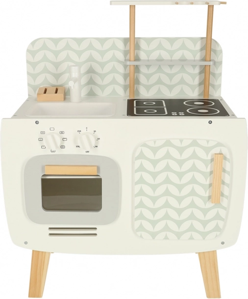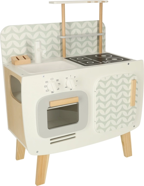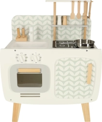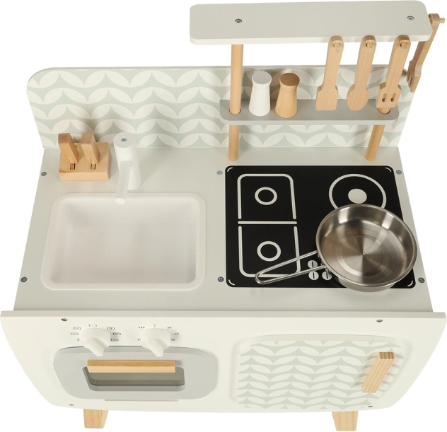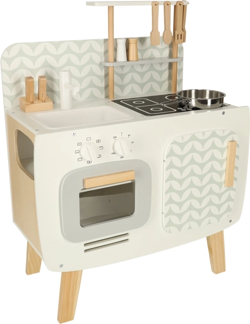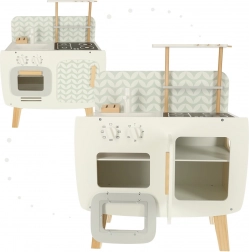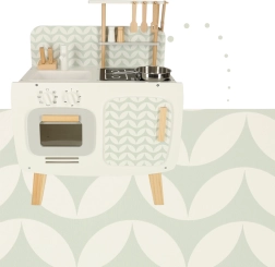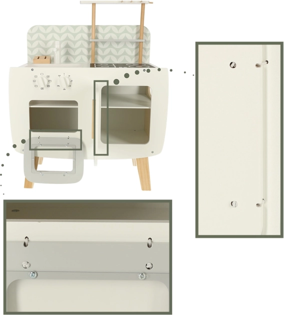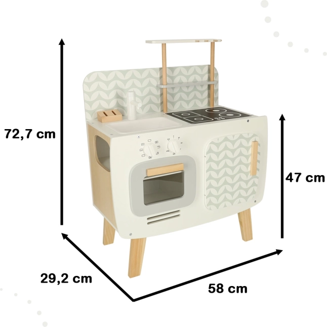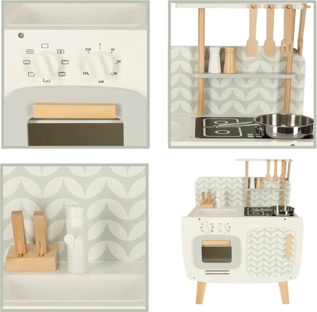 Kuchyňa je vybavená základnými spotrebičmi, ako je rúra, sporák a drez. Pohyblivé časti ako otočné gombíky dodávajú hre na vierohodnosti, čím podporujú väčšie zapojenie a záujem detí o kulinárske činnosti.