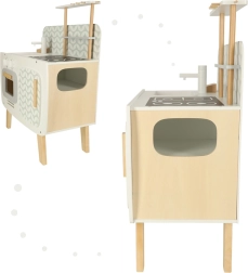 Drevená kuchynka rozvíja detskú predstavivosť a podporuje sociálne a manuálne zručnosti.